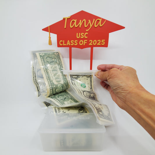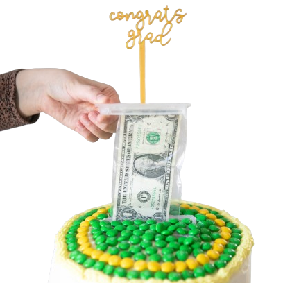 Our cake money pull out kit hides a long strip of dollar bills in an actual cake. Choose from 3 cake toppers: Birthday, Graduation, and Card Holder OR custom topper!